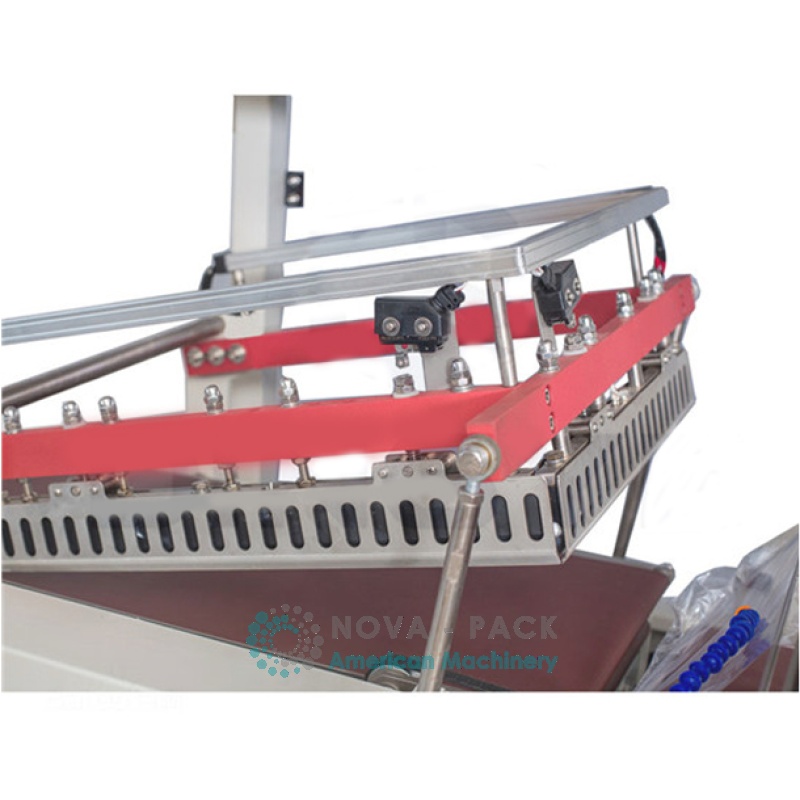 1. La cuchilla de sellado adopta una aleación de cobre rociada con teflón, no se pegará la película, sellará la solidez, sin humo, sin contaminación. La cuchilla de sellado horizontal y vertical adopta una conexión completa sin espacio, la película no se romperá. El marco de sellado adopta acero de aleación de alta calidad, la calidad de sellado es estable, el marco es difícil de dañar.