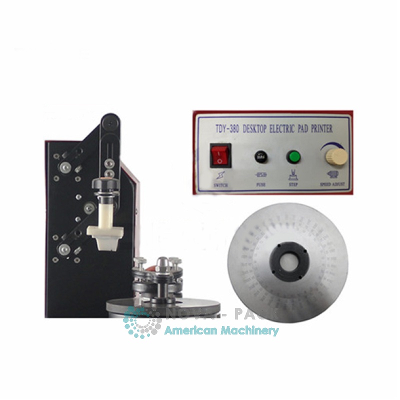 Impresora de  almohadilla TDY380B , la tinta se mantiene en un vaso de tinta , por lo que tiene la ventaja de mantener la tinta limpia y ahorrar tinta y evitar que la tinta se seque sobre el  modelo de raspador de cuchilla . Además, el tablero de impresión redondo tiene un círculo giratorio interno que amplía las palabras de impresión.