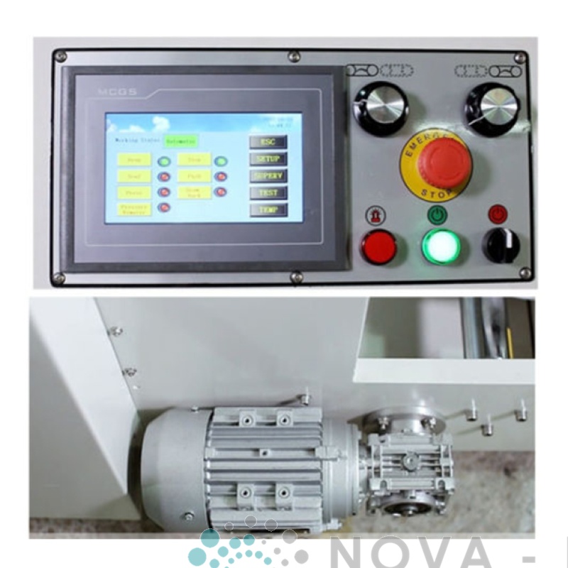 • La máquina adopta el sistema avanzado de pantalla táctil para la conversación hombre-máquina, el controlador lógico programable (PLC) 'Omron', el frasco de aire 'AirTAC' y todas las partes restantes adoptan una marca internacional famosa.