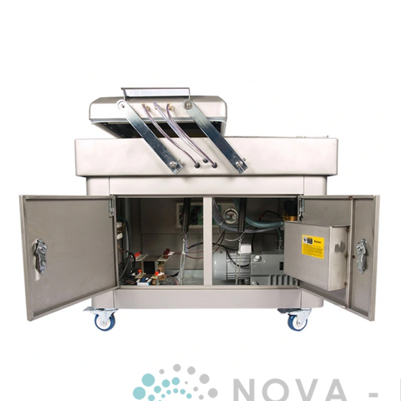 Máquina de envasado al vacío de doble cámara DZQ500-2SB 1, utilizado en las industrias alimentaria, farmacéutica, acuática, química y electrónica DZQ-2SB llena la bolsa de embalaje con algún tipo de gas, como nitrógeno, después de pasar la aspiradora. Se caracteriza por el procesamiento automático de aspiración, llenado de gas, sellado, impresión, enfriamiento, que se utiliza en el envasado al vacío para las industrias alimentaria, farmacéutica, acuática, química y electrónica.