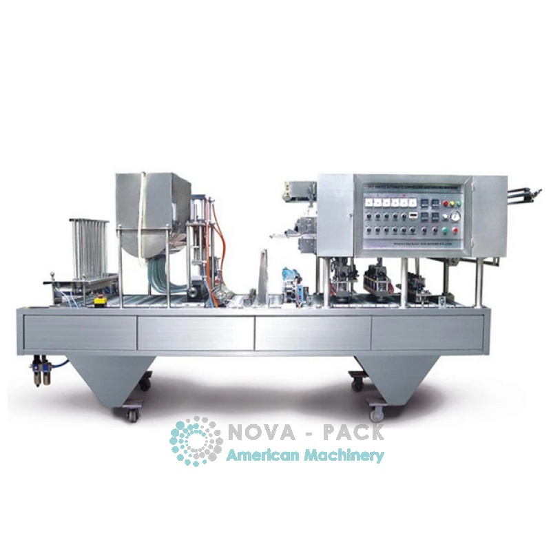 ? Esta es una nueva máquina diseñada para el llenado y sellado de jugo, leche, crema fresca, gelatina, pudín, agua mineral, condimentos y químicos diarios, etc.